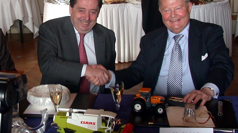 Am 23. Februar 2003 wurden die Karten im globalen Landtechnikgeschäft neu gemischt. Mit der Mehrheitsbeteiligung an Renault Agriculture und der späteren vollständigen Übernahme im Jahr 2008 stieg CLAAS vom Erntetechnik-Spezialisten zum Longliner auf und ergänzte das Produktportfolio um Standard- und Spezialtraktoren, die sich nahtlos unterhalb des in Harsewinkel gebauten XERION einfügten. Die Vertragsunterzeichnung zwischen Helmut Claas und Patrick Faure, Vorstandsmitglied von Renault S.A., traf nach der Bekanntmachung am Folgetag auf der SIMA in Paris auf ein erhebliches Medienecho. Ende April erfolgte die Freigabe der schrittweisen Übernahme durch das Kartellamt.