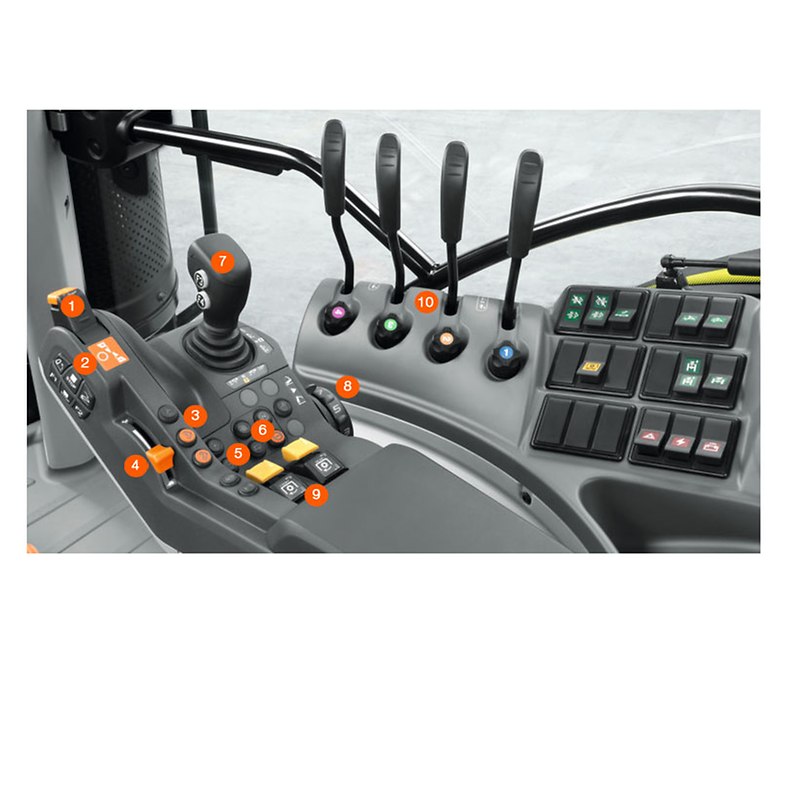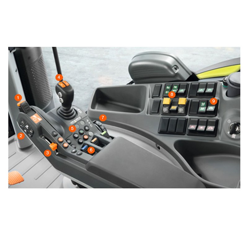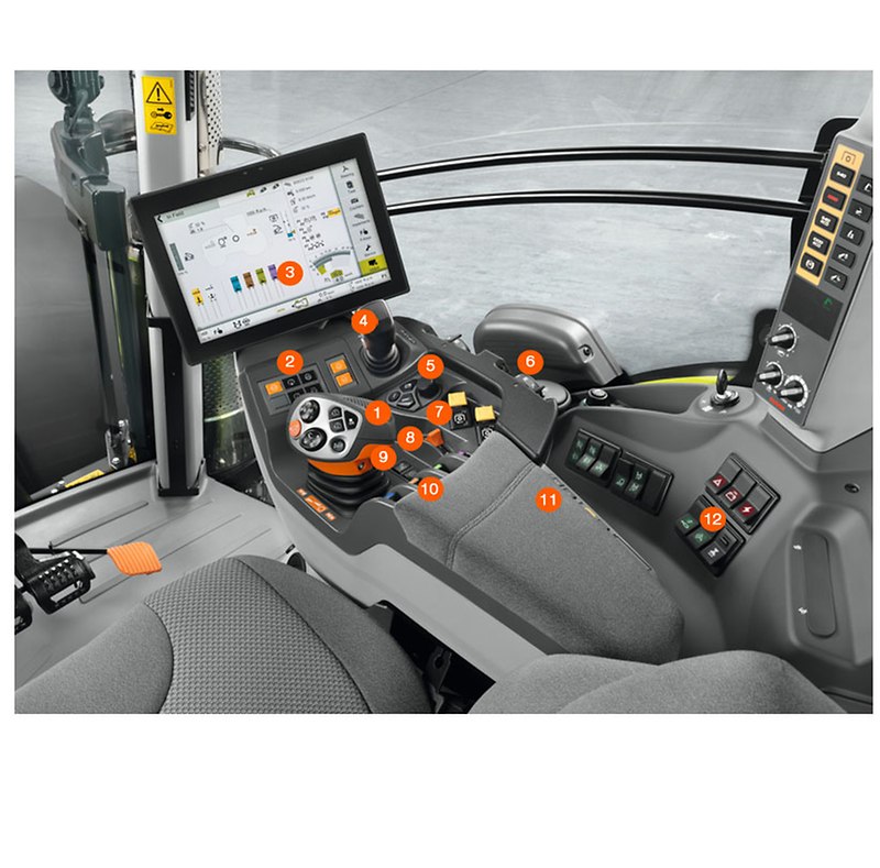 Sie bietet beste Ergonomie und ist Dreh- und Angelpunkt für entspanntes, effektives Arbeiten. Sie ist das Ergebnis umfangreicher Analysen der Bedienabläufe in der Kabine. Häufig benötigte Funktionen finden sich auf der Multifunktionsarmlehne, seltener benötigte Funktionen liegen auf der rechten Seitenkonsole.